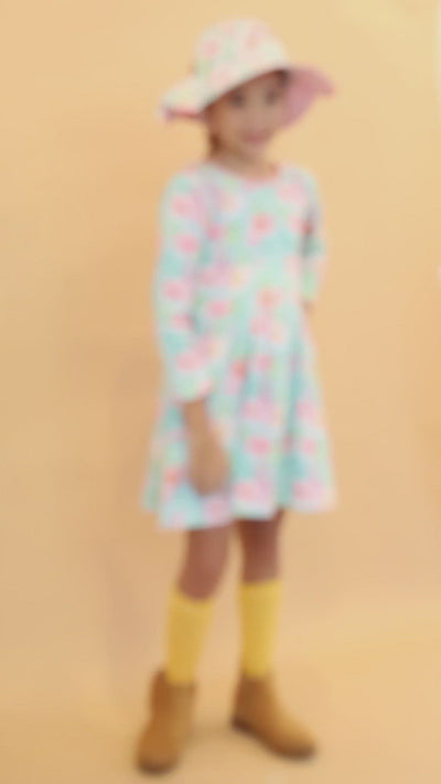 We love a vintage floral, and our Watercolour is painted-style prettiness, unique, special and so elegant. We are sure you're little one will adore the soft and delicate tones, the amazing quality and fit, ease of wear - plus the pockets (wheee!), long sleeves and elastic through the waist - making this a pretty AND practical dress to love for years to come.