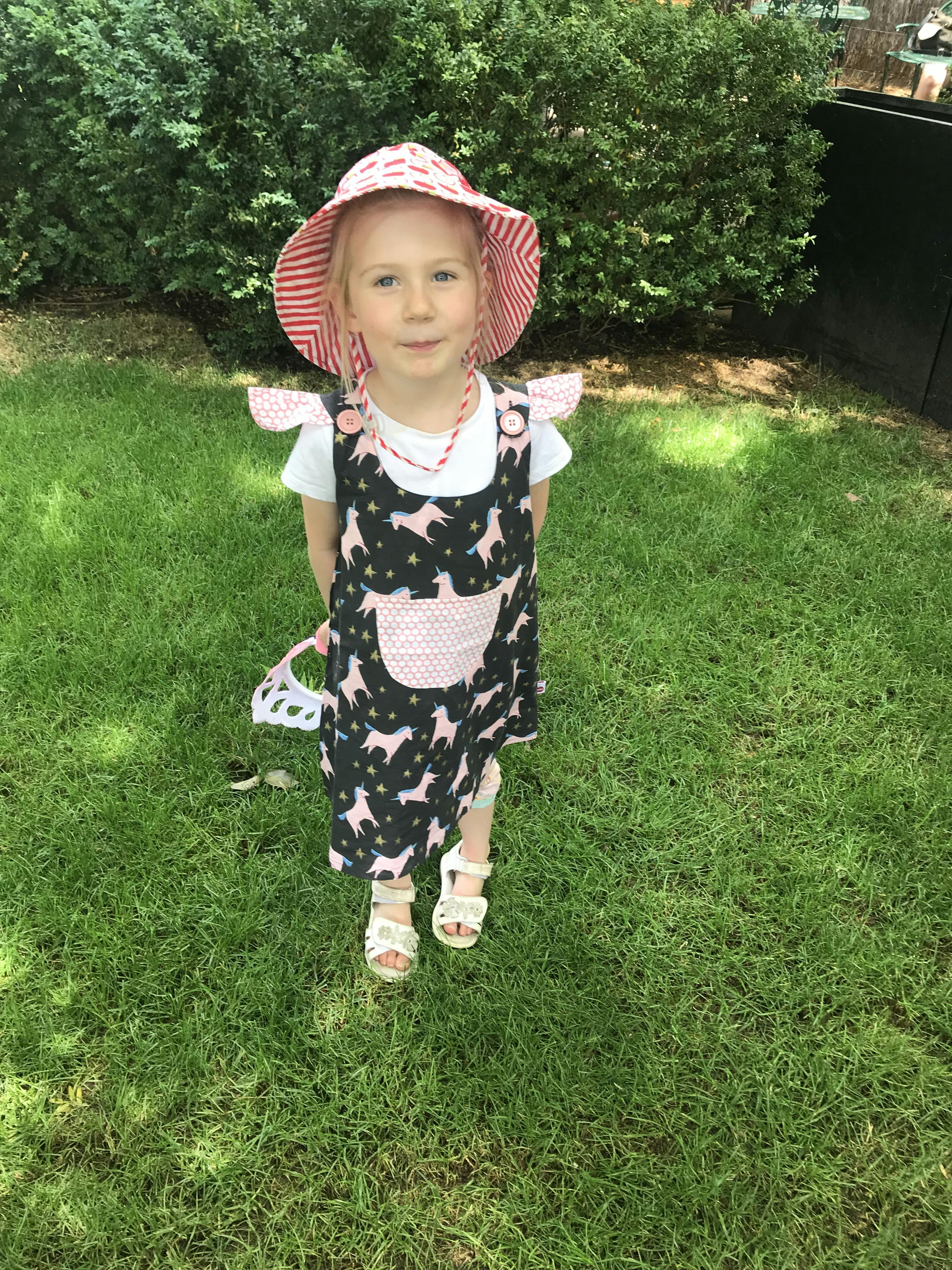 This dress is just perfect for my unicorn obsessed girl. It was love at first site! The fit is generous enough to allow for a T-shirt or long sleeve top in cooler weather, but also perfect to wear the dress on its own on a hot day. The print is adorable and the frill on the sleeve just adds to the appeal. My daughter loves the pocket, perfect for collecting treasures in!