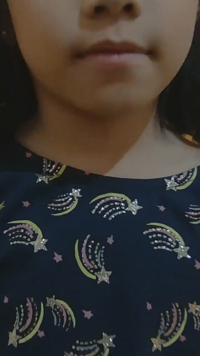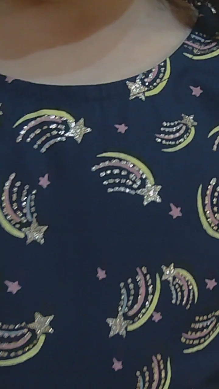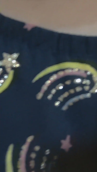 Shine on like a super STAR! Your little girl is going to feel extra-galactic her navy Superstar dress, with sparkly gold features and a soft, brushed cotton texture - and they look amazing in the sunlight. Be bright and sparkle - while enjoying comfort and ease of movement.